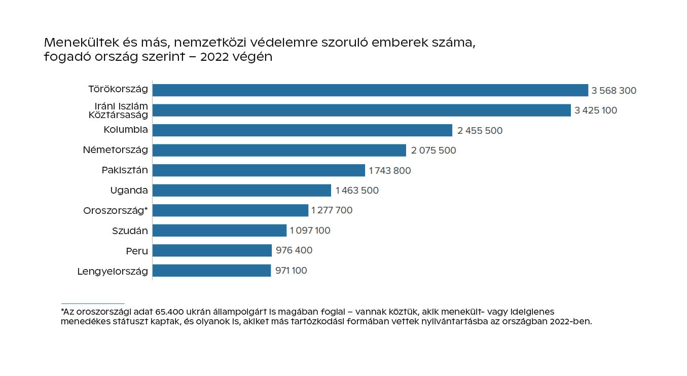 1. 2022-ben 35,3 millió hazáját elhagyni kényszerült menekült, 62,5 millió belső (vagyis hazája határain belül maradt) menekült, 5,4 millió menedékkérő és 5,2 millió olyan ember volt, akinek szüksége lenne menedékjogra. Így az ENSZ jelentése tavaly év végére összesen 108,4 millió embert számolt össze, akit erőszakkal üldöztek el otthonából.