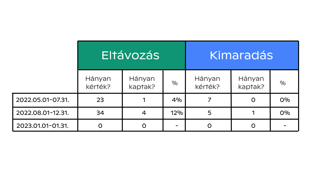 Sok hozzánk fordulótól azt hallani, hogy a börtön eleve megpróbálja lebeszélni a fogvatartottakat arról, hogy kérelmeket adjanak be pl. eltávozásra. Ráadásul hamar elterjedt a fogvatartottak körében: nem érdemes kérni, úgysem lehet megkapni. Ez már abban is visszaköszön, hogy idén januárban senki sem próbálkozott a fogvatartottak közül.