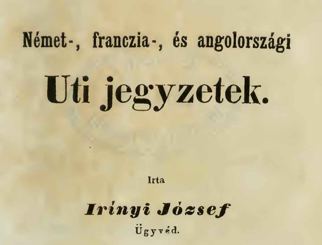 Széchenyi, Wesselényi, Eötvös József, Bölöni Farkas Sándor, Pulszky Ferenc, Gorove István és különösen Szemere Bertalan ösztönzik Irínyit arra, hogy saját szemével győzödjön meg a különféle nyugati fejlődési utakról. Hozzá a francia áll majd a legközelebb, de az angol is imponál neki, a német (leginkább porosz) változatban pedig kevés követésre méltót talál.